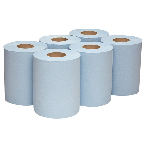 WypAll L10 centrefeed roll, designed for light duty hygiene wiping and perfect for tasks like cleaning food preparation and service surfaces. Compatible with the portable WypAll Reach dispenser (6221) which ensures rolls remain enclosed to help prevent against transmission of food-borne bacteria. 6 rolls x 430 sheets, 1 ply, blue (2,580 total)