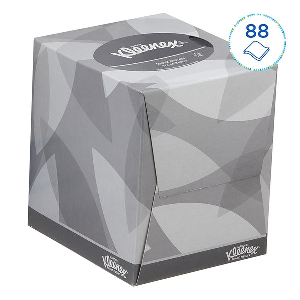 Kleenex facial tissues are soft and luxurious, providing elevated care. Packed in an upright cube format for a stylish, professional image, each tissue box contains strong and absorbent 2 ply facial tissues. High quality Kleenex tissues, produced from FSC certified fibres. 12 cubes x 88 sheets, 2 ply, white, individual sheet size 21cm (L) x 20cm (W), (1,056 total)